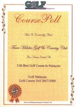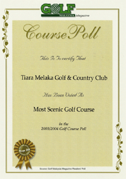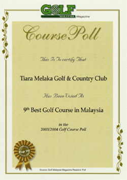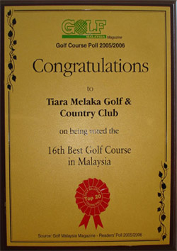 Tiara Melaka Golf & Country Club had the distinction of being ranked the 4th Best Golf Course in Malaysia for Year 2007 by the prestigious international golf magazine